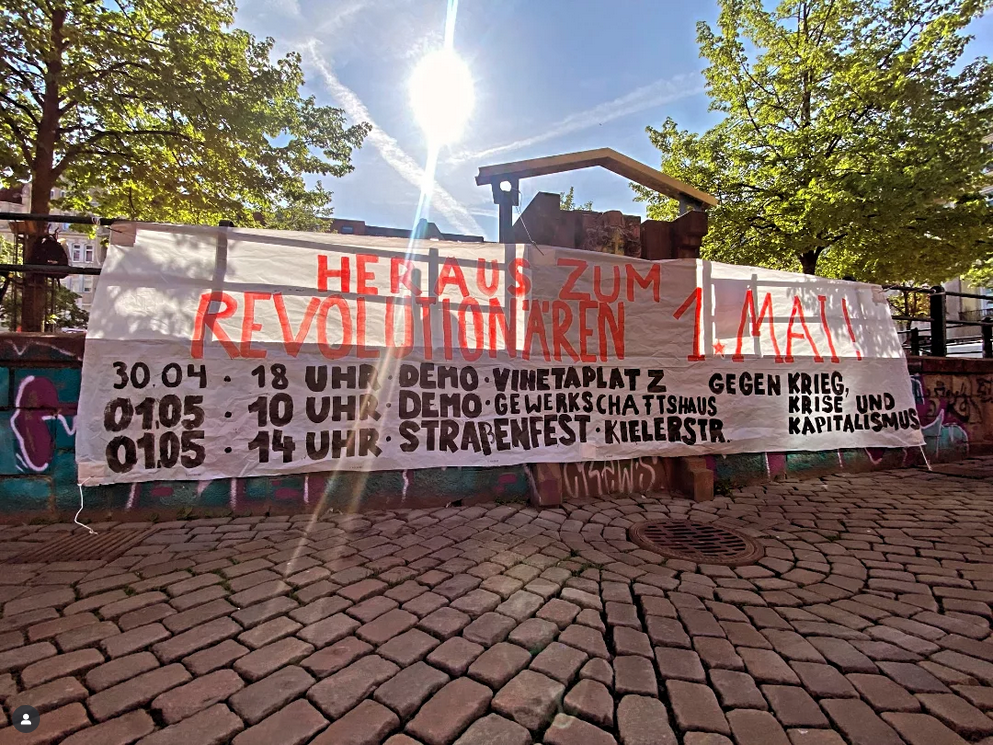 30.04.2025 | 18 Uhr | Revolutionäre Vorabenddemo | Vinetaplatz | Gaarden (Vorabtreffpunkt 17.30 Uhr Stadtteilladen Anni Wadle)